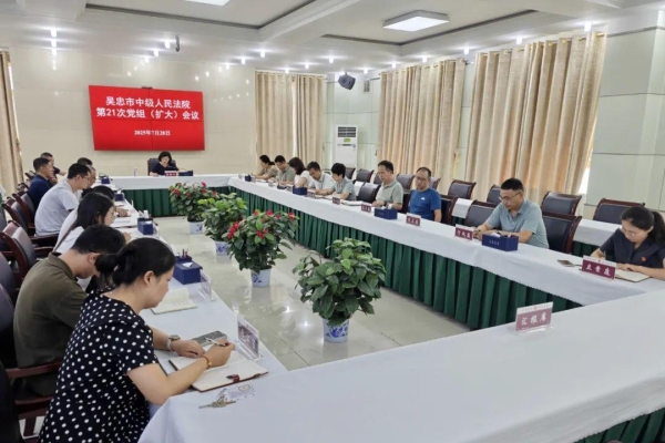 本网讯(黄 涛 梁学琴)7月28日,吴忠市中级人民法院召开党组(扩大)会议,学习贯彻《中共中央关于加强新时代审判工作的意见》,专题传达学习全国大法官研讨班会议、全区法院上半年质效分析会暨“六项能力水平提升工程”推进会精神,结合实际部署全市法院下一步工作。